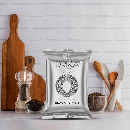 Introduce the king of spices to your kitchen with Orika Black Pepper Whole (Kali Mirch)?an essential ingredient found in households worldwide. Celebrated for its robust, piquant taste and distinctive aroma, black pepper is a highly adaptable spice that enhances both classic Indian recipes and international fare. Orika delivers top-grade whole peppercorns, carefully selected and hygienically sealed to lock in their natural oils and rich flavor. Whether you prefer them whole, freshly cracked in a grinder, or blended into spice mixes, these peppercorns promise vibrant freshness and boldness in every mouthful. In addition to its culinary appeal, black pepper is prized for its health-boosting properties. Packed with antioxidants, it aids digestion, strengthens immunity, and supports overall well-being. Infuse your dishes with genuine flavor and wholesome benefits using Orika Black Pepper Whole?the ideal partner for both taste and health in your kitchen.