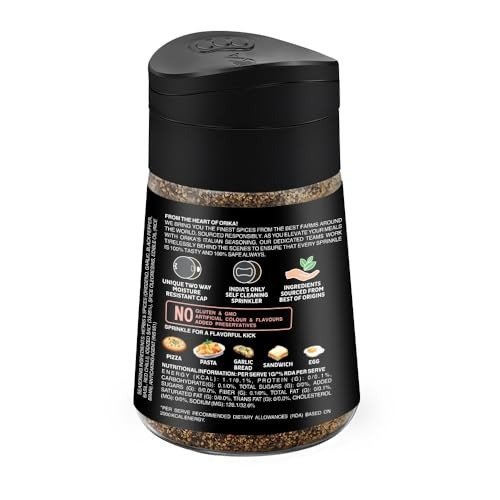 - The moisture-resistant sprinkler jar guarantees extended freshness and convenient storage and use. Packaged hygienically in compliance with FSSAI food safety standards, it preserves the original aroma and rich flavour. Enjoy an authentic taste with no preservatives, fillers, additives, or anti-caking agents.