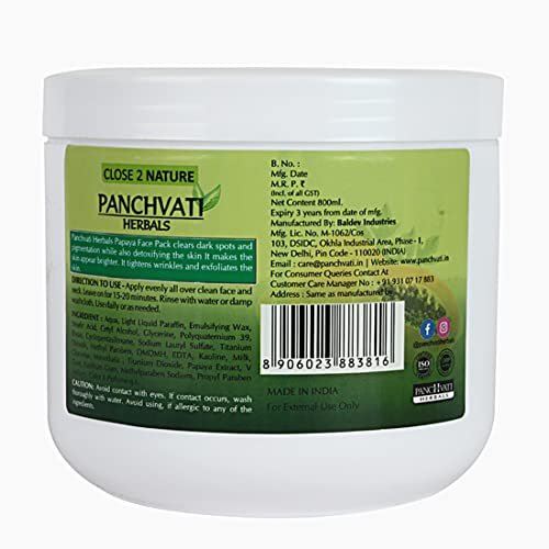 Panchvati Herbals Regular Papaya Face Pack | Removes Dead Skin Cells & Keeps Skin Youthful – 800 ml