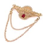 Panjatan Men’s Ethnic Mandala Brooch with Red Stone & Golden Chain ? Perfect for Sherwanis, Suits & Blazers – Fast Shipping to USA & Canada