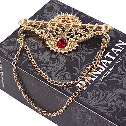 Panjatan Men’s Ethnic Mandala Brooch with Red Stone & Golden Chain ? Perfect for Sherwanis, Suits & Blazers – Fast Shipping to USA & Canada