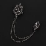 Panjatan Men’s Glittery Black Crystal Double Chain Brooch – Fast Shipping to USA & Canada