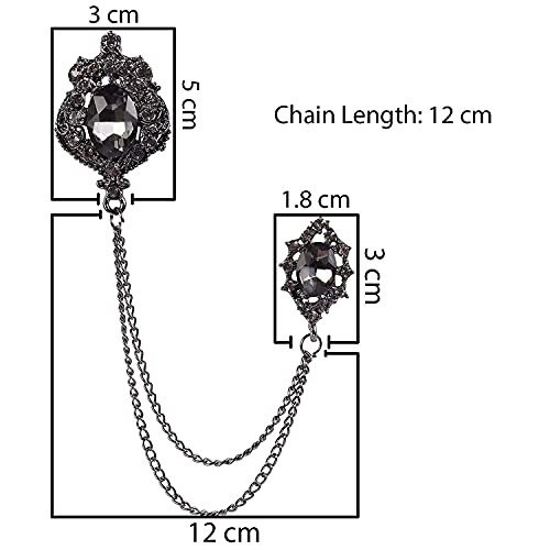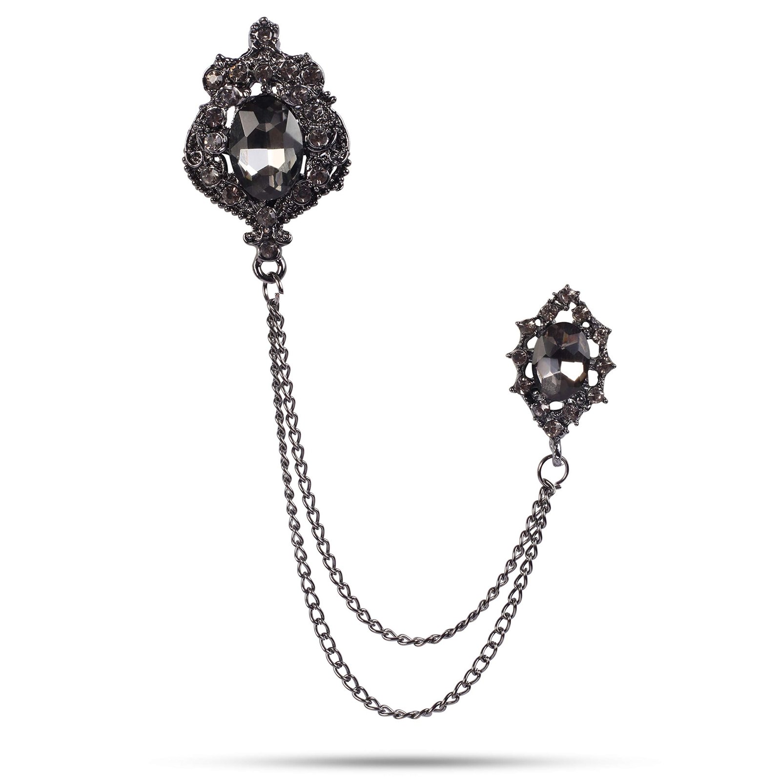 Panjatan Men’s Glittery Black Crystal Double Chain Brooch – Fast Shipping to USA & Canada
