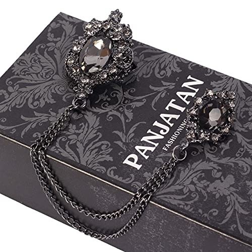 7 reviews for Panjatan Men’s Glittery Black Crystal Double Chain Brooch – Fast Shipping to USA & Canada