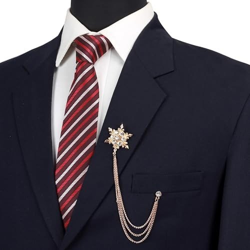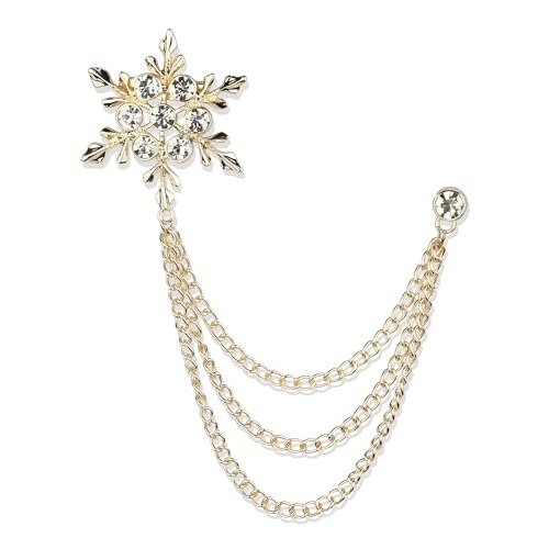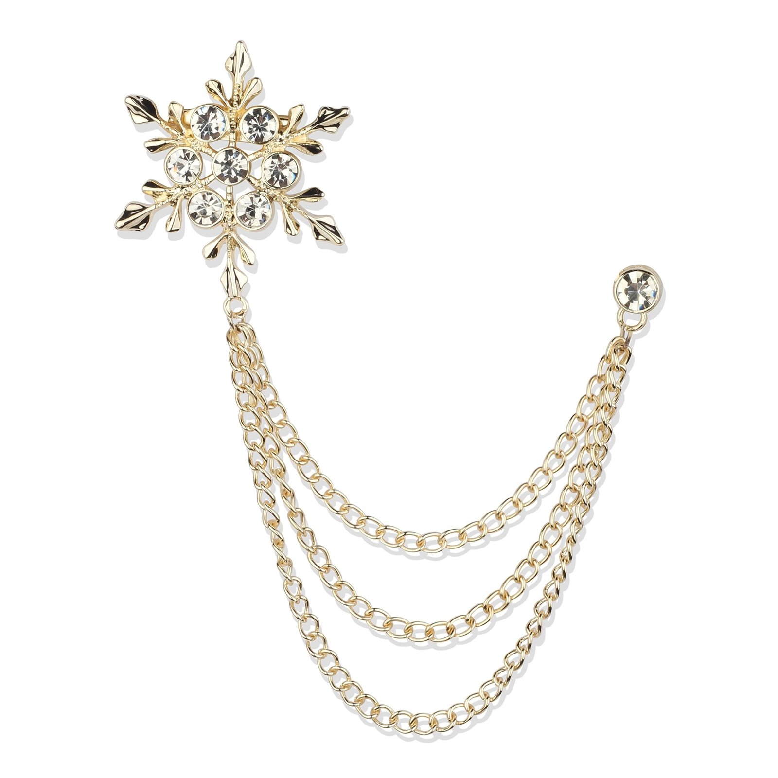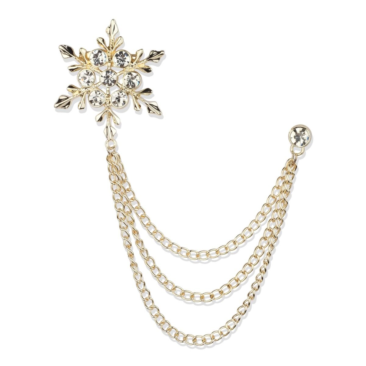 Panjatan Snowflake Design Brooch with Golden Chain ? Men’s Elegant Pin for Suits, Blazers & Ethnic Wear – Fast Shipping to USA & Canada