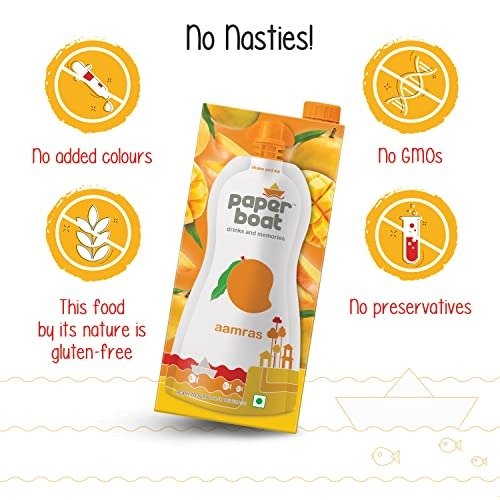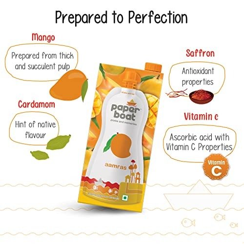 - Crafted using traditional methods, Paper Boat Aamras offers a taste reminiscent of a legendary, golden elixir made from freshly harvested mangoes, infused with the indigenous notes of cardamom and saffron.
