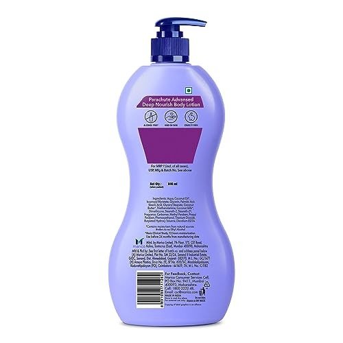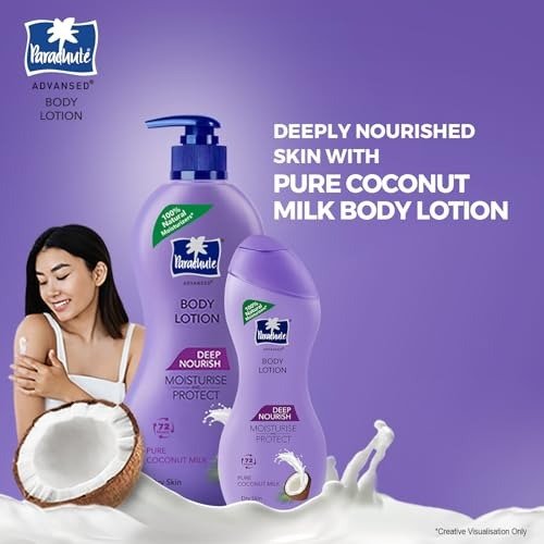Achieve naturally radiant and luminous skin this winter with Parachute Advansed Deep Nourish body lotion, specifically formulated for women. This unique, patented blend is designed for those with extra dry skin. Infused with the nourishing properties of Pure Coconut Milk and 100% natural moisturizers, it delivers profound hydration and intensive moisture, even in the most severe weather conditions. The lotion penetrates ten layers deep into the skin, replenishing lost moisture and repairing dry, damaged areas. Its fast-absorbing formula features a lightweight, non-greasy texture that conditions and softens your skin without leaving any residue. The gentle fragrance will leave you feeling refreshed and revitalized. Coconut Milk is a remarkable ingredient celebrated for its nourishing and transformative effects on the skin. It hydrates and calms the skin from within, restoring lost moisture and aiding in the repair of dry and irritated areas. The entire Parachute Advansed Body lotion range is derived from natural sources and contains 100% natural moisturizers, specifically crafted for Indian skin. Unlike many other body lotions, our formulation is free from mineral oils and petroleum-based ingredients (such as petroleum jelly or liquid paraffin). Our body lotions are safe for the skin and do not contain silicones, sulfates, phthalates, or artificial colors. Perfect for extremely dry to very dry skin, it is suitable for both men and women.