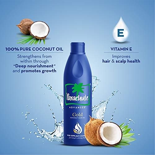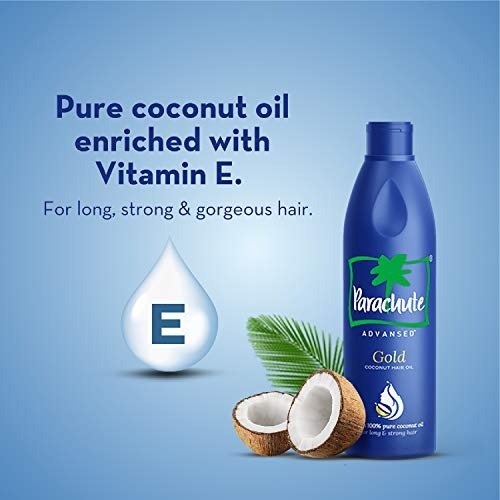 - Parachute Advansed Gold Coconut Hair Oil is formulated with pure coconut oil and infused with vitamin E.