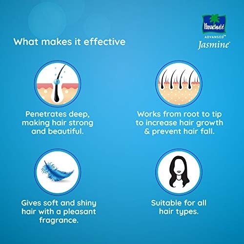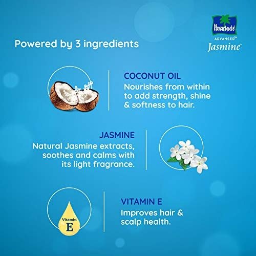 - Parachute Advansed Jasmine Coconut Hair Oil enriches and fortifies your hair, imparting a vibrant, healthy luster.
