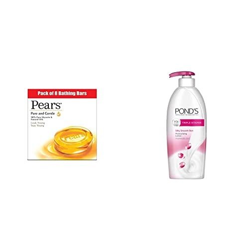 Pears Pure And Gentle Bathing Bar, 125g (Pack Of 8) & Pond’s Triple Vitamin Moisturising Body Lotion, 300ml – Fast Shipping to USA & Canada