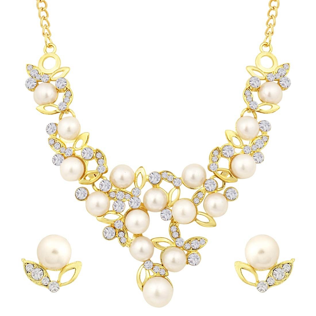 Peora 18K Gold Plated Pearl CZ Nature Inspired Necklace Earring Set for Women Girls Stylish – Fast Shipping to USA & Canada