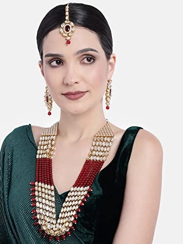 Peora Gold-Plated Brass and Pearl Necklace With Earrings And Mang Tika for Women & Girls – Fast Shipping to USA & Canada
