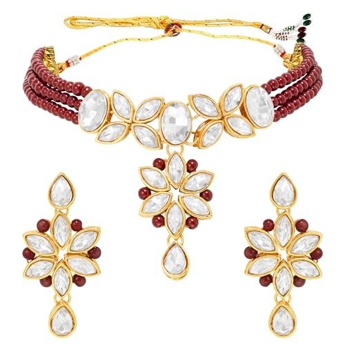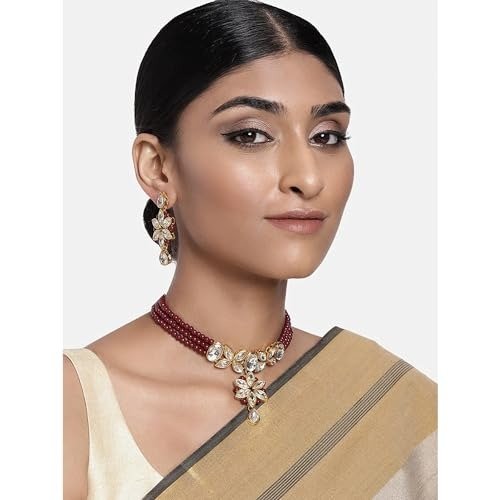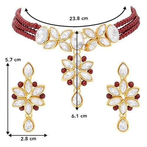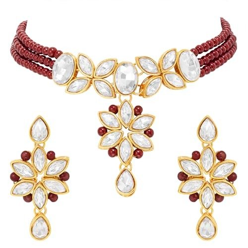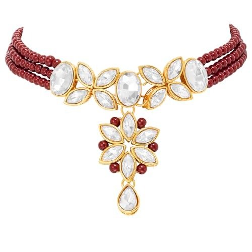 6 reviews for Peora Gold Plated Traditional Crystal Kundan Beaded Choker Necklace Jewellery Set for Women – Fast Shipping to USA & Canada
