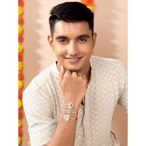 6 reviews for Peora Rakhshabandhan Thread Rakhi for Brother Bhaiya | CZ & Crystal Studded | Set of 3 | Rakhi Hamper Roli Chawal & Greeting Card – Fast Shipping to USA & Canada