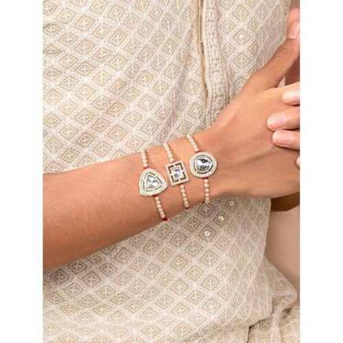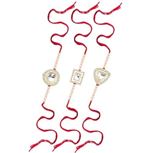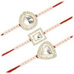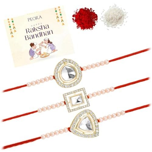 Peora Rakhshabandhan Thread Rakhi for Brother Bhaiya | CZ & Crystal Studded | Set of 3 | Rakhi Hamper Roli Chawal & Greeting Card – Fast Shipping to USA & Canada
