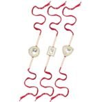 - DIMENSIONS: Thread Length – Design 1: 36.4 cm, Design 2: 36.9 cm, Design 3: 35.9 cm; Width – Design 1: 2.3 cm, Design 2: 1.6 cm, Design 3: 2.3 cm; Weight – Design 1: 4.80 g, Design 2: 3.39 g, Design 3: 4.40 g. Package Includes – A Combo Set featuring 3 Rakhis, 1 Greeting Card, 1 Pack of Roli, and 1 Pack of Chawal.
