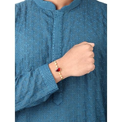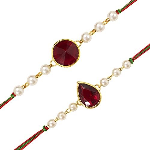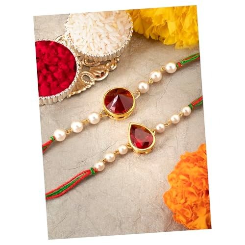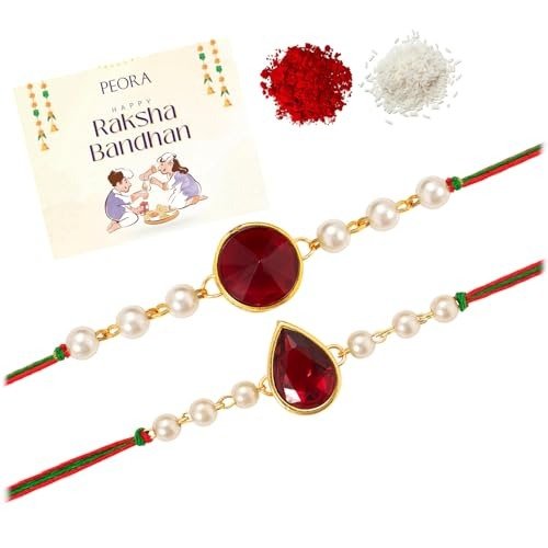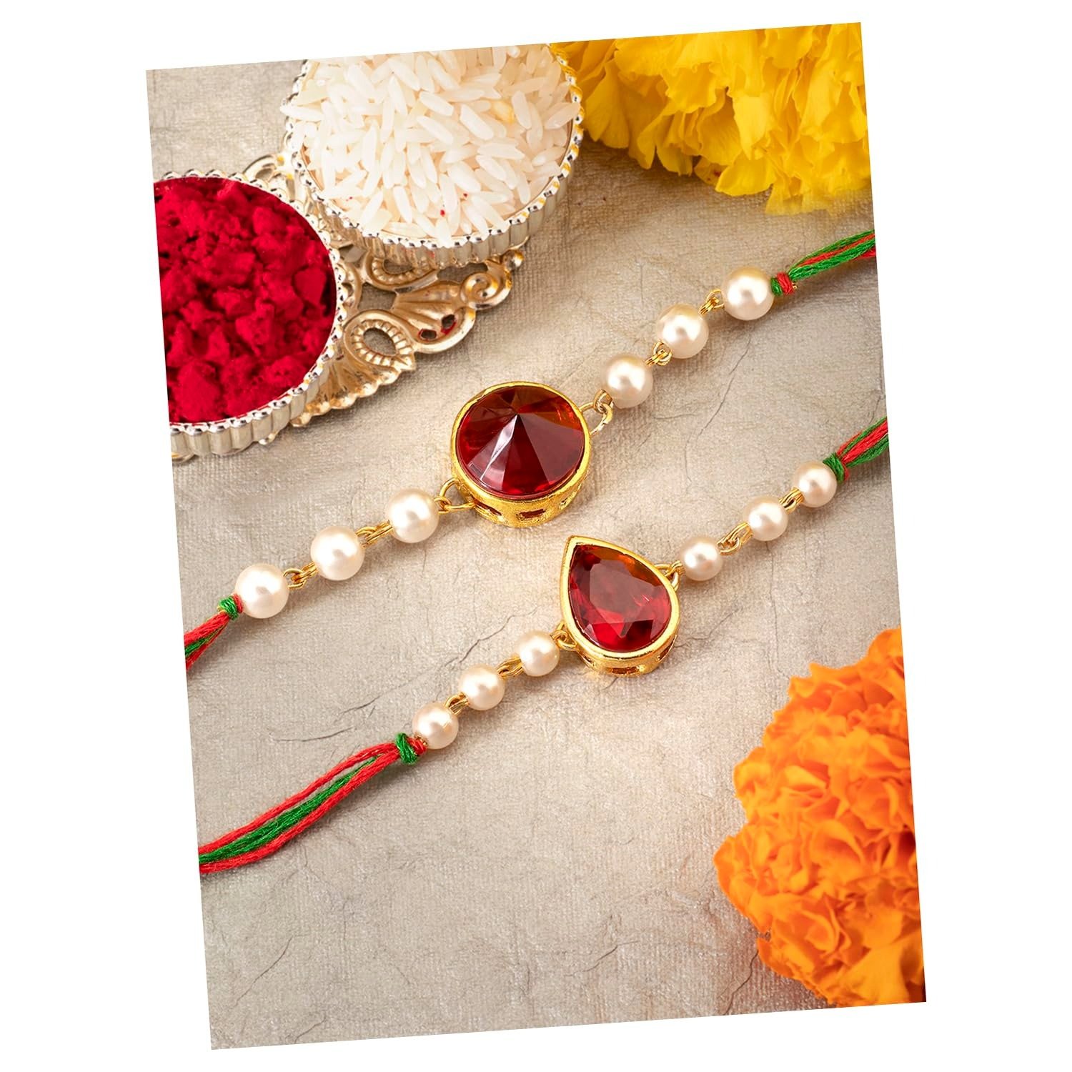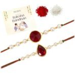 Peora Rakhshabandhan Thread Rakhi for Brother Bhaiya | Kundan Beads & Crystal Studded | Combo Set of 2 | Rakhi Hamper Roli Chawal & Greeting Card – Fast Shipping to USA & Canada