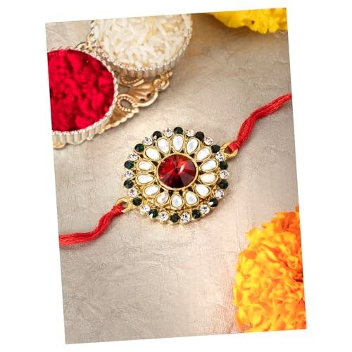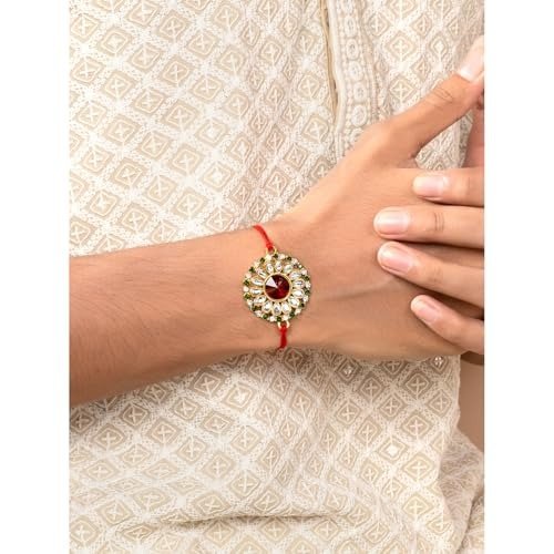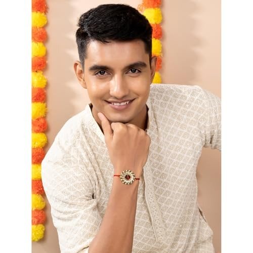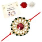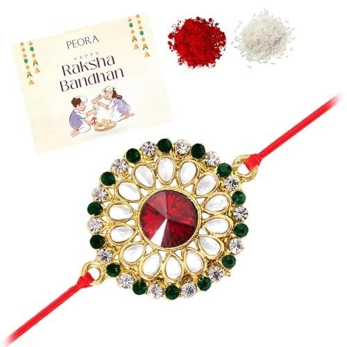 Peora Rakhshabandhan Thread Rakhi for Brother Bhaiya | Kundan Crystals & Pearl Studded | Rakhi Hamper Roli Chawal & Greeting Card – Fast Shipping to USA & Canada