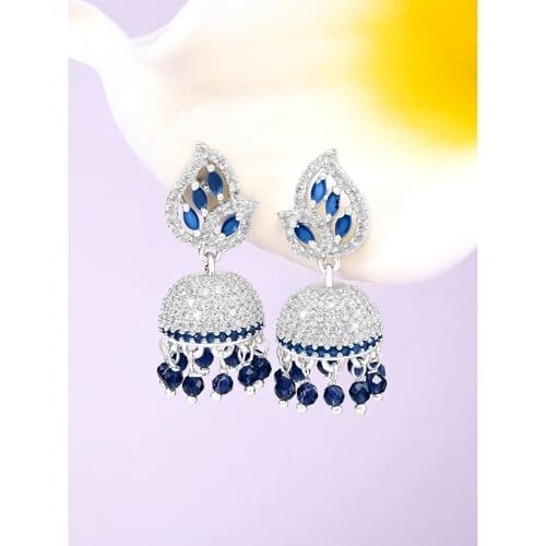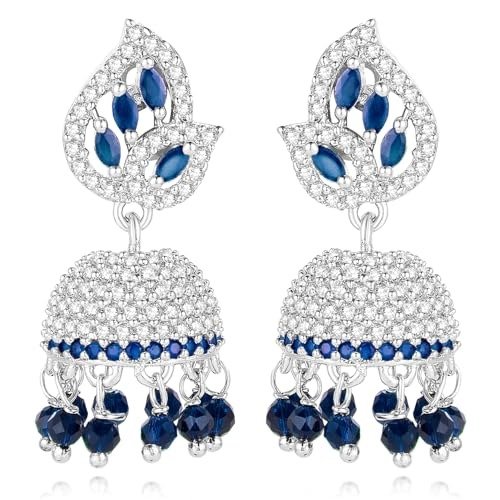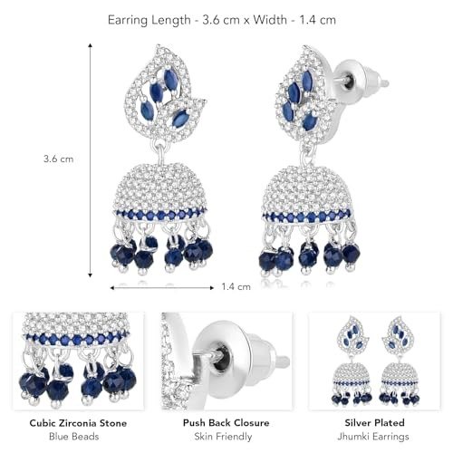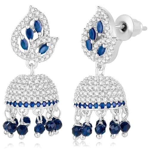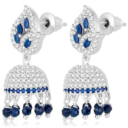 6 reviews for Peora Silver Plated Cubic Zirconia Crystal & Beads Studded Jhumki Earrings Jewellery for Girls & Women – Fast Shipping to USA & Canada