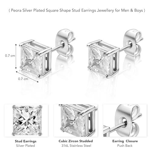 Peora Silver Plated Cubic Zirconia Studded Square Shape Stud Earrings Fancy Stylish Fashion Jewellery for Men & Boys – Fast Shipping to USA & Canada