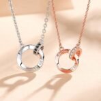 6 reviews for Peora Silver & Rose Gold Plated FALL IN LOVE Round Interlock Band Ring Style Couple Pendant Chain Necklace for Men & Women – Fast Shipping to USA & Canada