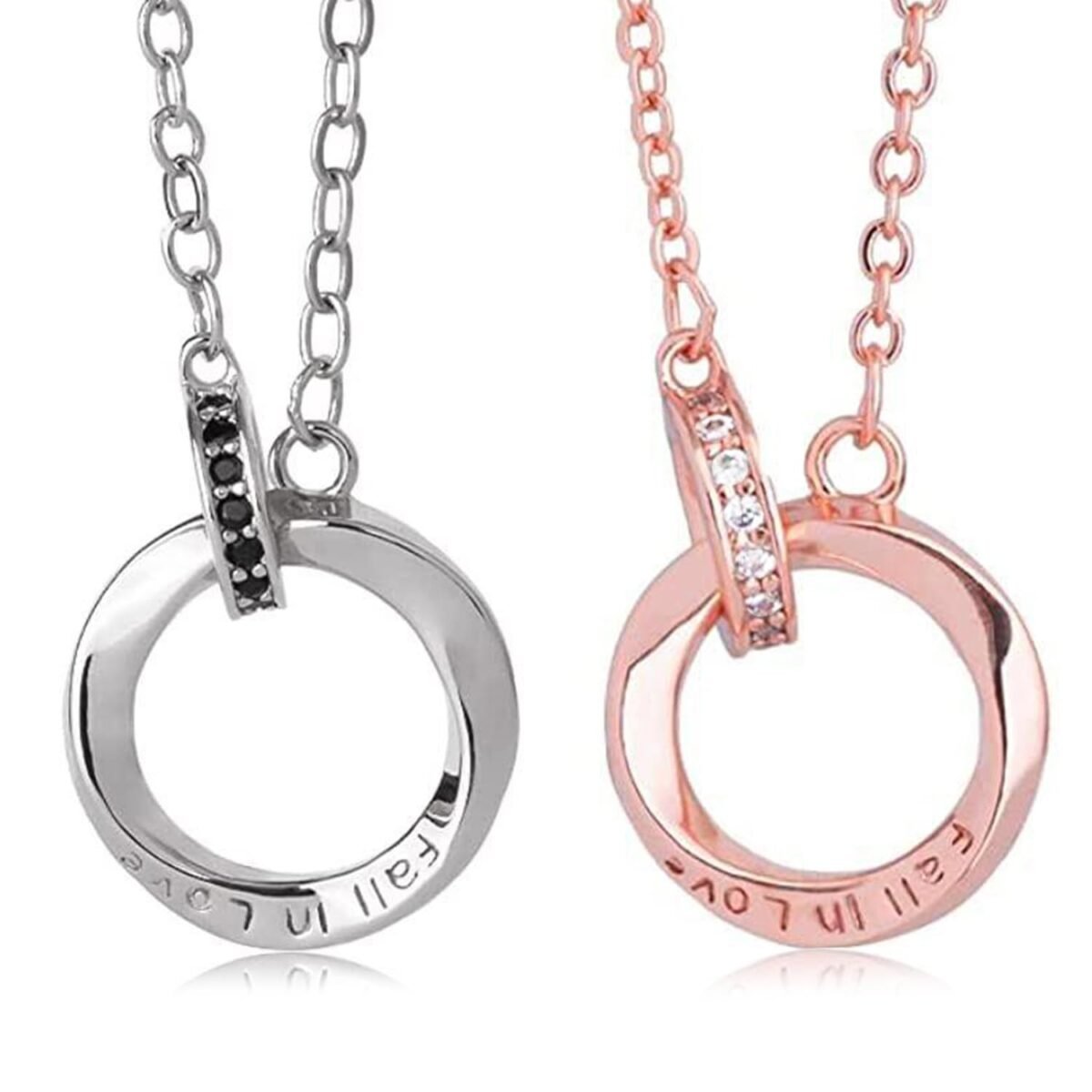 6 reviews for Peora Silver & Rose Gold Plated FALL IN LOVE Round Interlock Band Ring Style Couple Pendant Chain Necklace for Men & Women – Fast Shipping to USA & Canada