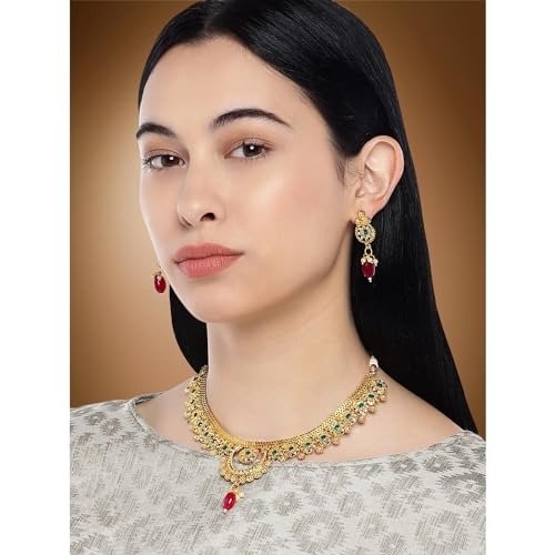 7 reviews for Peora Traditional Gold Plated Choker Necklace Jewellery Set For Women – Fast Shipping to USA & Canada