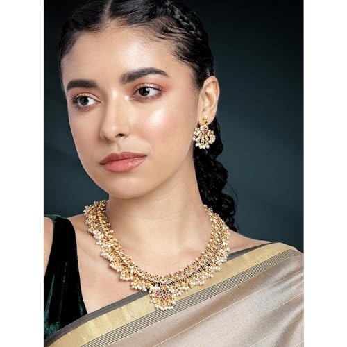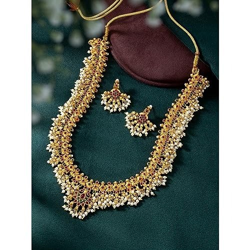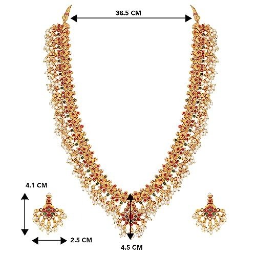 6 reviews for Peora Traditional Gold Plated Red Green Beads Studded Long Necklace Drop Earrings Set Ethnic Stylish Fashion Jewellery Gift for Girls & Women – Fast Shipping to USA & Canada