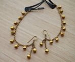 For the love of jingles! This delicate earring is crafted with an array of tiny ghungroos, allowing you to create a soft, musical chime wherever you go. Effortlessly wearable, it features a coordinating chain that secures to your hair with a snap clip, keeping everything in place for a tidy, elegant appearance-ideal for parties or gatherings when you want your hair neatly styled at the back. Its neutral tones and versatile design make it easy to pair with both bohemian outfits and traditional Indian attire, especially those inspired by Rajasthani fashion. Minimalist in form yet rich in detail, it strikes the perfect balance between subtlety and ornamentation.