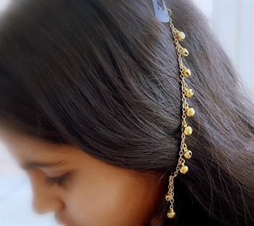 Pretty Ponytails Ghungroo Gold Earrings with Kaan Chain Sahara or Kanauti Traditional Wedding Haldi Mehendi Jewellery for Women or Girls – Fast Shipping to USA & Canada