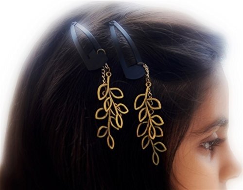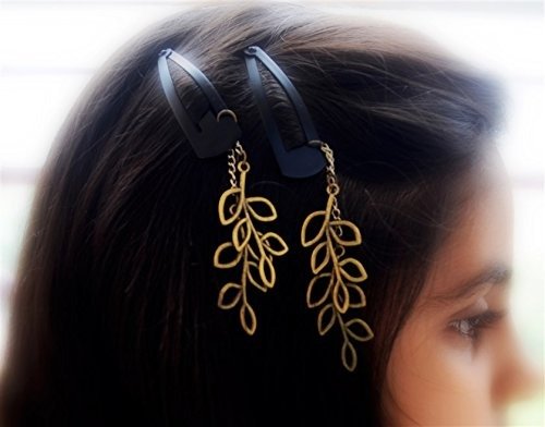 Golden leaves adorn delicate branches, linked together with matching chains on a convenient snap clip-for those who adore foliage. Let your hair make a statement. Perfect for young girls, teenagers, and even moms.