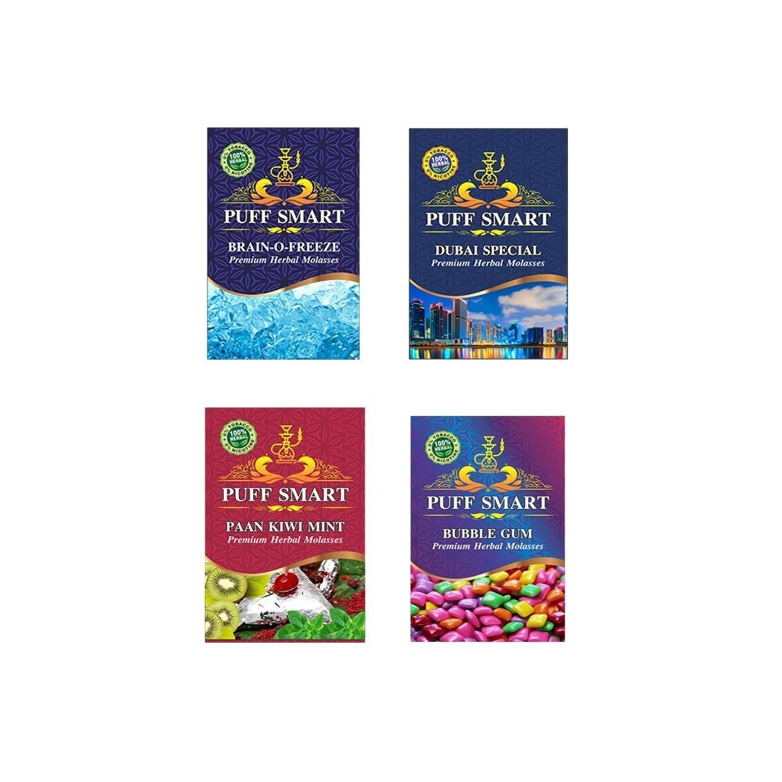 PUFF SMART Herbal Molasses Brain-O-Freeze, Dubai Special, PKM And Bubblegum (100% Nicotine and Tobacco Free) (Pack Of 4) – Fast Shipping to USA & Canada