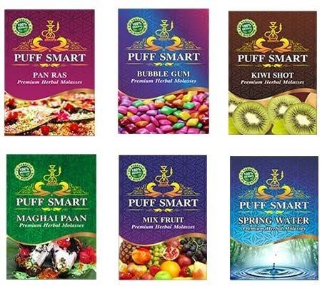 PUFF SMART Premium Herbal Flavor Pan Ras, Bubblegum, Kiwi Shot, Maghai Pan, Mix Fruit, Spring Water, 5PCS Filter Tip, 250GM Mr. Coal Combo (100% Nicotine and Tobacco Free) – Fast Shipping to USA & Canada