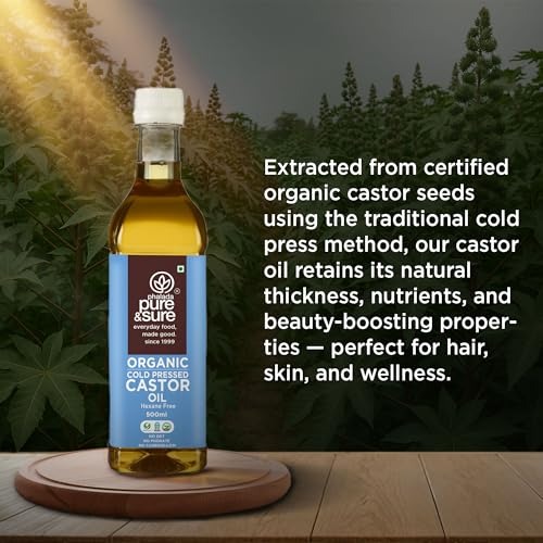 Pure & Sure Organic Cold Pressed Castor Oil 250ml | 100% Natural & Cold Pressed | For Hair Growth, Eyelashes, Eyebrows & Skin – Natural Moisturizer & Conditioner – Organic Beauty Essential – Fast Shipping to USA & Canada