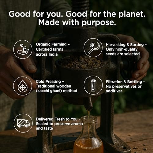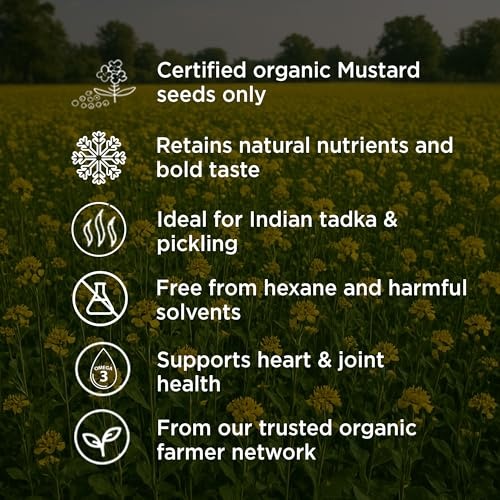 - 100% Organic & Cold Pressed: Our mustard oil is made from the highest quality certified organic mustard seeds, grown naturally in the fertile plains of Rajasthan-one of India?s most famous mustard-producing regions. We use traditional wooden cold press (kachi ghani) methods to gently extract the oil at low temperatures, preserving all the natural nutrients, enzymes, and antioxidants. This way, you get pure, wholesome oil just as nature intended.
