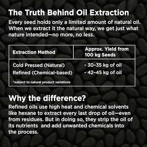• Pure & Simple – Just the Way Nature Intended: We?re committed to bringing you sesame oil in its most natural form. Our oil is cold-pressed, unrefined, unbleached, and undeodorized-never touched by hexane, sodium hydroxide, phosphoric acid, or any preservatives. Nothing added, nothing taken away-just clean, honest goodness you can feel good about.