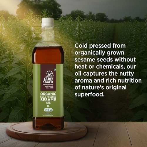 • Sustainably Sourced & Farmer-Backed Since 1999: Every bottle of Pure & Sure Sesame Oil is made with a commitment to sustainability and fairness. Our sesame seeds are organically grown by a dedicated network of over 1,800 trusted farmers, ensuring transparency, traceability, and ethical sourcing every step of the way. By choosing Pure & Sure, you?re not just opting for healthier food-you?re supporting rural communities and promoting cleaner, more responsible farming for a better planet.