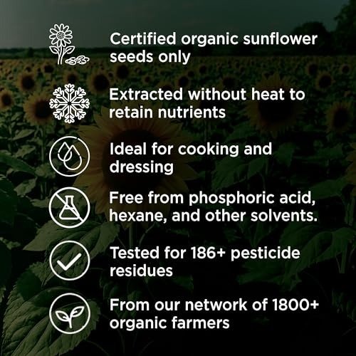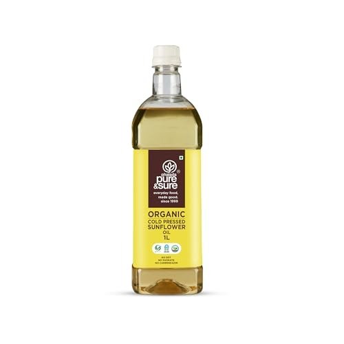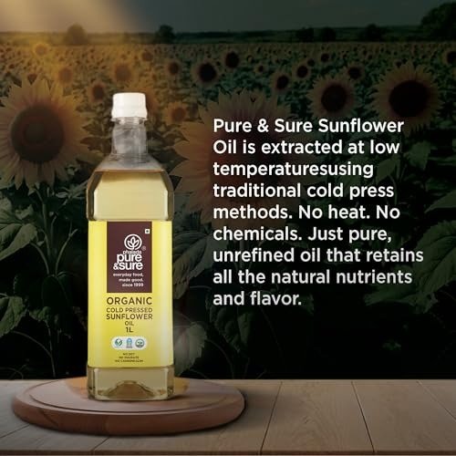 Pure & Sure Organic Cold Pressed Sunflower Oil | Sunflower Oil for Cooking | High in Antioxidants, Delicious & Healthy Sunflower Cooking Oil (1 Litre) – Fast Shipping to USA & Canada