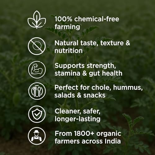 - 100% Organic & Unpolished ? Purely Natural: Our Kabuli Chana comes from traditional white chickpea varieties, grown on certified organic farms in Madhya Pradesh and Maharashtra. We leave it completely unpolished, so you get its natural creamy color, rich nutty flavor, and all the nutrition intact. There?s no artificial shine, no bleaching, and no unnecessary processing-just clean, honest chana, just as nature intended.