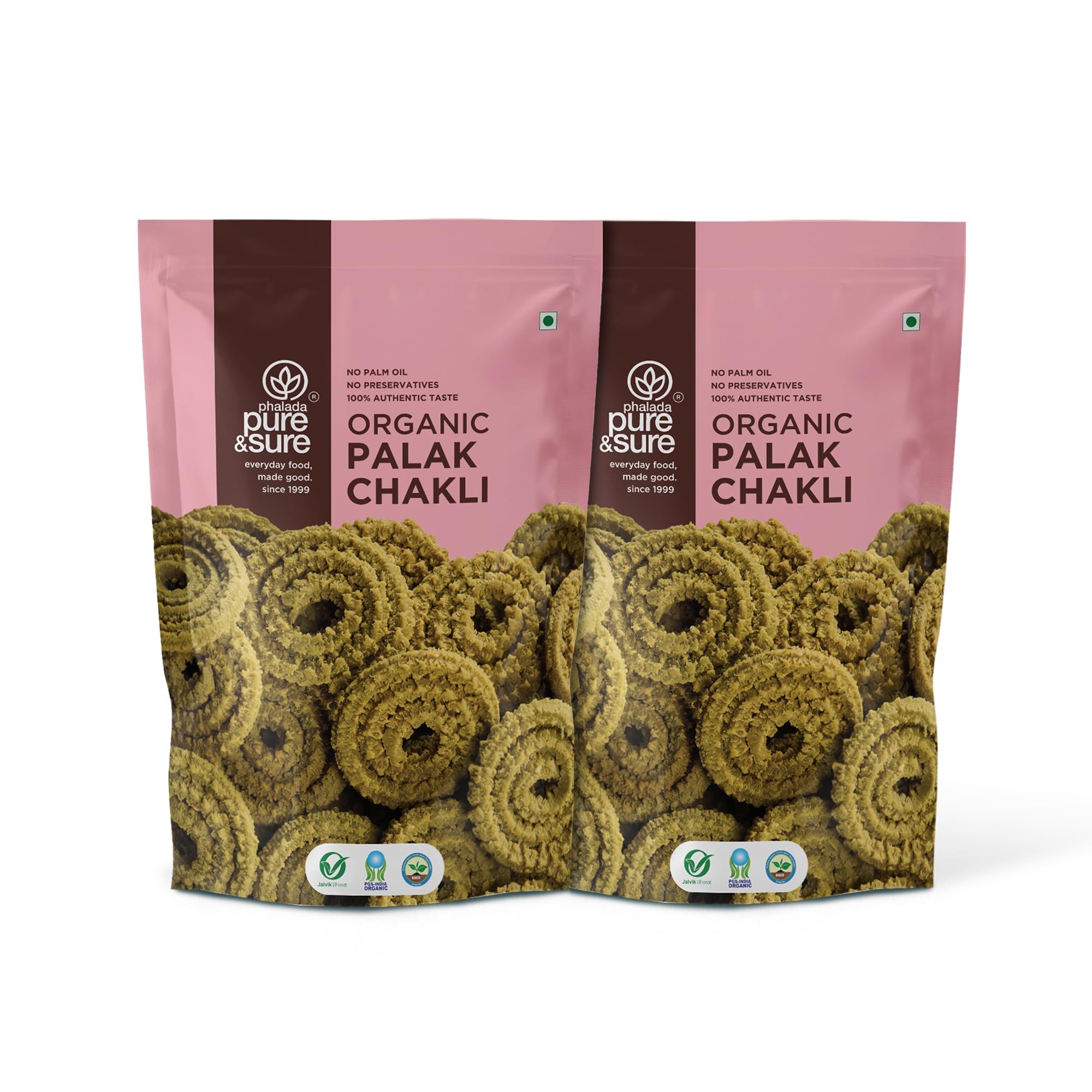 Pure & Sure Organic Palak Chakli-240gm | Delicious Crunchy Namkeen & Snacks | Ready to Eat Tea Time Snacks, Cholesterol Free, No Trans Fats, No Preservatives| 120gm each (Pack of 2) – Fast Shipping to USA & Canada