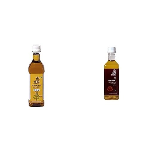 Pure & Sure Organic Sesame Oil | Cold-Pressed Sesame Oil for Cooking, 500 ML & Pure & Sure Organic Castor Oil 500ml | Hexane Free Castor Oil | Castor Oil Cold Pressed Edible | Castor Oil for Hair – Fast Shipping to USA & Canada