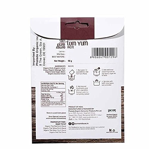 Pure & Sure Organic Tom Yum Curry Paste | Natural Curry Paste | Made with Thai Ingredients | Ready to Cook/Use | Aromatic & Tasty | No Preservatives | 50gm – Fast Shipping to USA & Canada