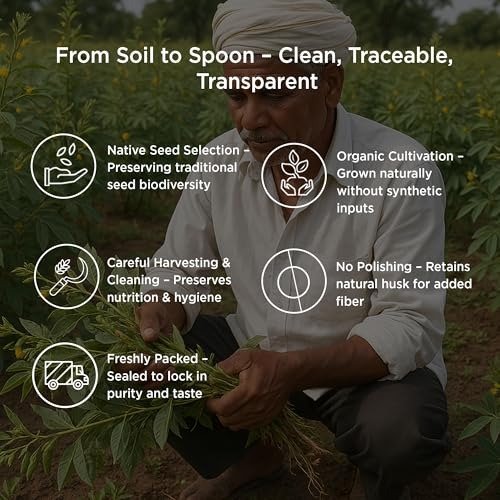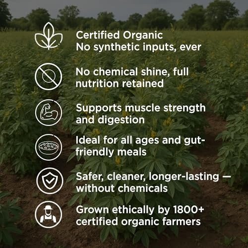 • 100% Organic & Unpolished ? Just As Nature Intended: Our Toor Dal comes straight from certified organic farms in Maharashtra, where traditional, chemical-free methods are used to grow native seed varieties. We leave our dal unpolished, so it keeps its natural fiber, color, and texture-along with all the nutrients that are often lost during polishing. The result is a wholesome, authentic dal that cooks evenly and delivers the true taste of nature.