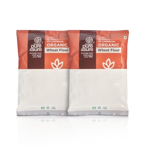 Pure & Sure Organic Whole Wheat Flour (Atta) 2Kg | 100% Atta & No Maida | Freshly Milled from Farms | High in Iron, Zinc & Protein | No Additives & Chemical Free| 1 Kg each (Pack of 2) – Fast Shipping to USA & Canada