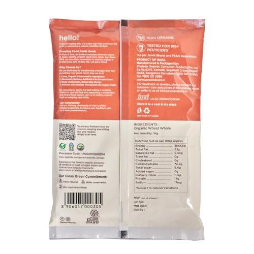 Be the first to review “Pure & Sure Organic Whole Wheat Flour (Atta) 2Kg | 100% Atta & No Maida | Freshly Milled from Farms | High in Iron, Zinc & Protein | No Additives & Chemical Free| 1 Kg each (Pack of 2) – Fast Shipping to USA & Canada” Cancel reply
