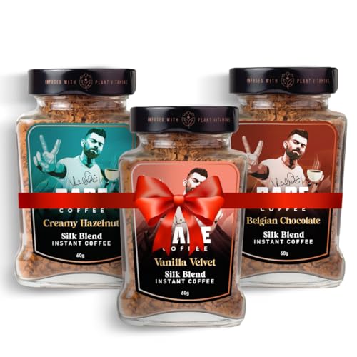 7 reviews for Rage Coffee Silk Blend Instant Coffee | Belgian Chocolate, Creamy Hazelnut & Vanilla Velvet Silk Blend Flavoured Coffee 60 GMs Each | 100% Pure Instant Coffee | Premium, Bold & Smooth | Pack of 3 – Fast Shipping to USA & Canada