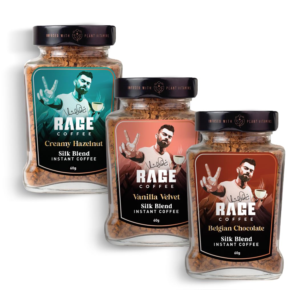Rage Coffee Silk Blend Instant Coffee | Belgian Chocolate, Creamy Hazelnut & Vanilla Velvet Silk Blend Flavoured Coffee 60 GMs Each | 100% Pure Instant Coffee | Premium, Bold & Smooth | Pack of 3 – Fast Shipping to USA & Canada