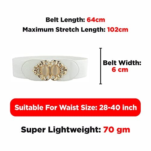 - Crafted from Durable Materials: This women?s designer waist belt features a unique textured design made from long-lasting, stretchable fabric and faux leather. It?s finished with a secure metal closure and is designed to comfortably fit waist sizes from 30 to 40 inches.
