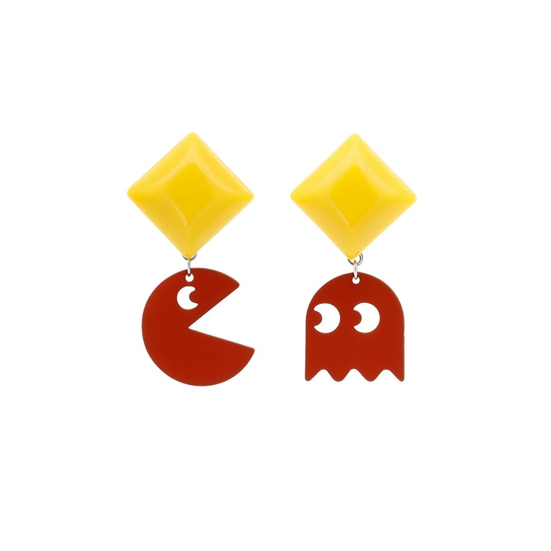 - Whimsical Robot-Inspired Style? Vibrant red and yellow earrings crafted from sturdy, stone-free plastic, bringing a lively and fashionable touch to your look.