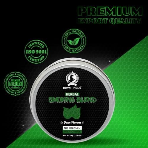 ROYAL SWAG Ayurvedic and Natural 100% Tobacco-free and Nicotine-free Herbal Smoking Mixture Blend(30 gram/1.0 oz) PAAN FLAVOUR | All Natural Ingredients – Fast Shipping to USA & Canada